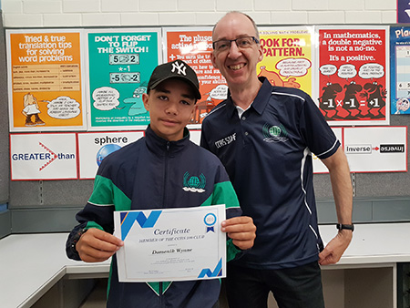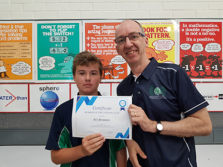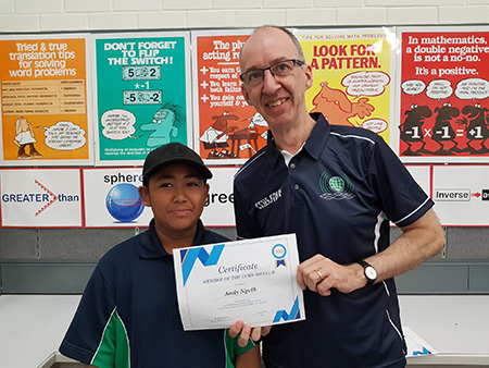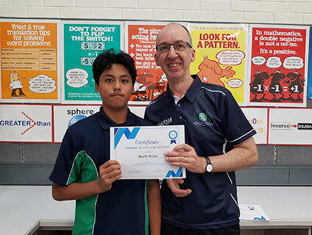 Maths teacher Dr Steven Laing presents Year 7 Maths Pathway students with certificates for significant improvement.